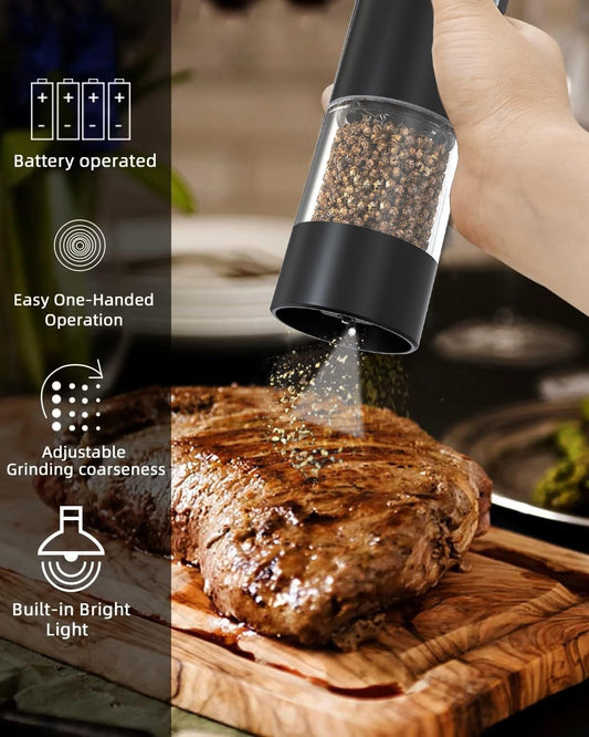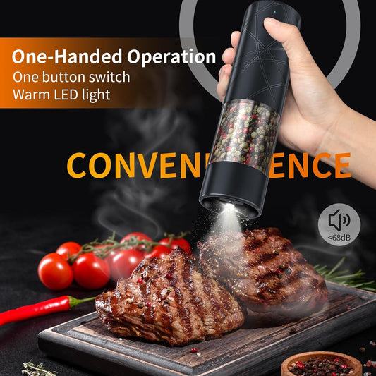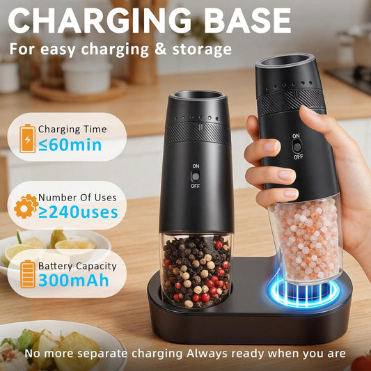 Gravity Electric Salt and Pepper Grinder Set Automatic Shakers Upgraded Pepper Mill with Rechargeable Base, External Adjustable Coarseness, LED Light, Easy Refill for Kitchen & Outdoor, Gift Giving